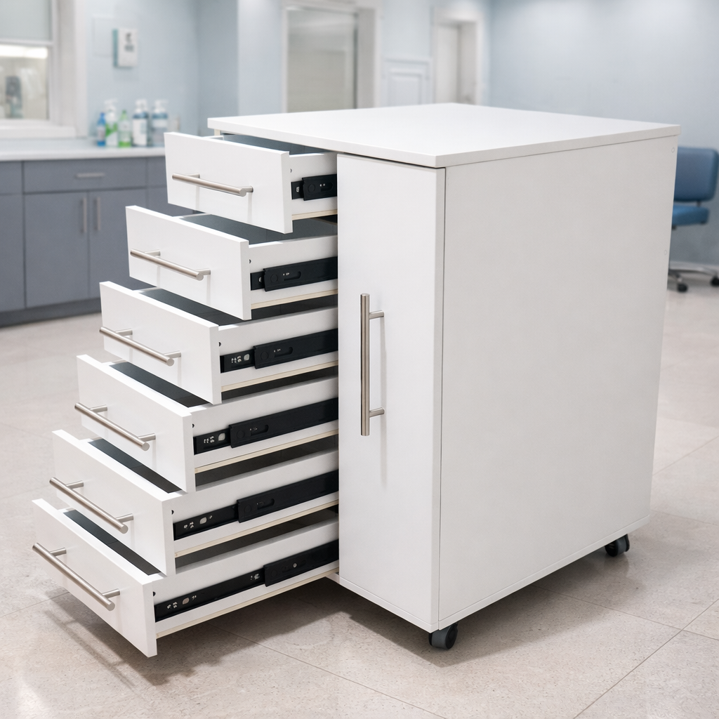 En Spazzios Mobiliario Clínico diseñamos, fabricamos e instalamos carritos auxiliares a medida para clínicas y consultorios médicos. Sabemos que cada detalle en el entorno clínico influye en la atención, por eso nuestros carritos están pensados para ofrecer movilidad, funcionalidad y orden en todo momento.